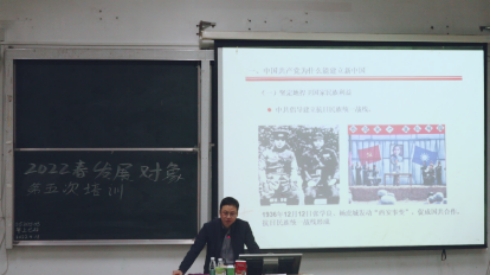 本网讯(通讯员 黄太斌 周美均/文 李林芳/摄)为从党的辉煌成就、艰辛历程、历史经验、优良传统中深刻领悟中国共产党为什么“能”的道理,4月18日,中共365电子娱乐官方网站医学部委员会2022年春季学期发展对象第五次培训课程于医学部8307教室召开。医学部党委委员、副主任、基础医学院院长王松老师作《中国共产党为什么“能”》的专题讲座,医学部全体党员发展对象参与本次培训课程。