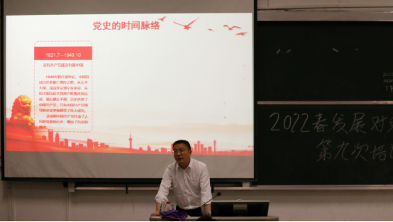 廖云教授为培训班作《回眸党的历史,赓续红色血脉》专题讲座。授课伊始,廖云教授阐述了党史学习教育的重要意义,他强调党的历史是最生动、最有说服力的教科书,党史是党员教育的“必修课”。随后,廖云教授按照时间脉络对党史进行了梳理,划分为“没有共产党,就没有新中国”、“只有共产党才能发展中国”、“中国特色社会主义道路是中国的必由之路”三个阶段,他特别指出是历史和人民选择了中国共产党,中国共产党植根于中国的大地与人民,为中国人民谋幸福、为中华民族谋复兴,这是中国共产党人与生俱来的初心和使命,也是激励中国共产党人不断前进的根本动力。