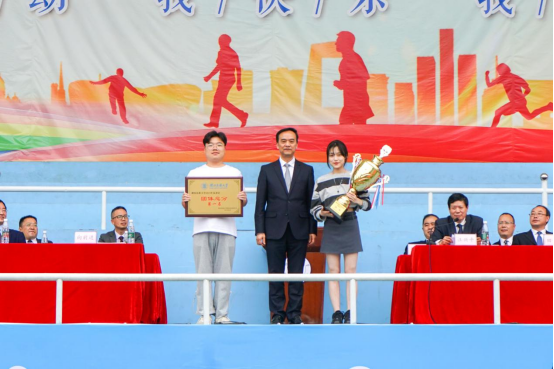 向前进为医学部颁发团体总分第一名奖牌和奖杯