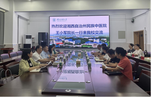 9月12日上午,湘西自治州民族中医院院长王小军、副院长彭治香、中国民族医药学会土家医药分会会长田华咏等一行5人莅临我校就土家医药分会换届及民族医药发展情况进行考察交流。医学部常务副主任陈龙菊、副主任杨瑾、民大医院康复科名誉主任刘哨兵、武陵山中药材检验检测中心副主任涂星、风湿性疾病发生与干预湖北省重点实验室办公室主任袁林及部分中医学专业教师参与交流。