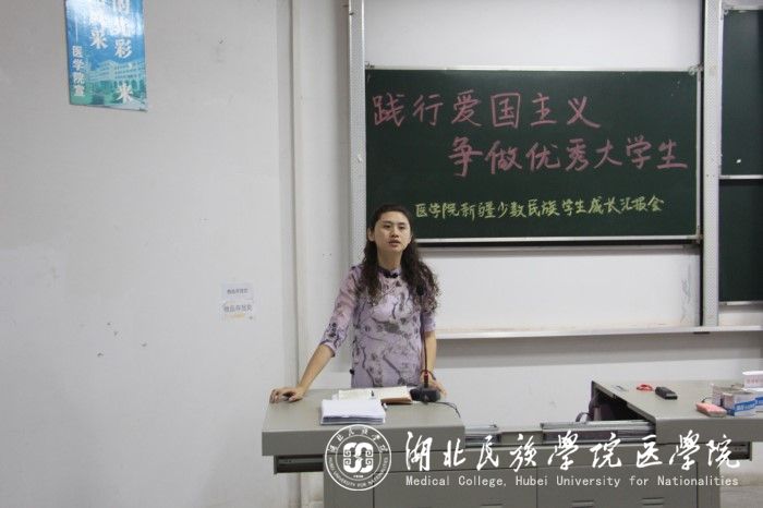 本网讯(通讯员 郭曼 杨柯/文 熊慧雯/摄) 6月18日,我院在8402教室举办“践行爱国主义争做优秀大学生——医学院新疆少数民族学生成长汇报会”,我院党委副书记张蕊,学生科副科长张辉,民族事务工作处吕波,阿布都卡迪尔·买合木提,阿巴斯·图尔兹老师出席本次活动。伊尔夏提·吐逊江,海仁古丽·艾尔肯,库勒恰什·巴特尔,胡西塔尔江·艾山江,依丁·卡麻五位新疆籍优秀毕业生应邀与医学院新疆籍同学们分享考研及就业经历。本次活动由梁丹玉老师主持,约140人参加本次活动。