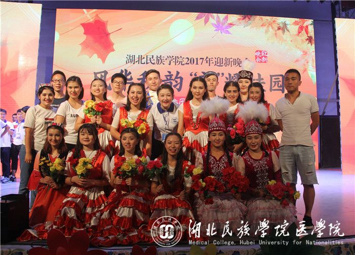 音乐与舞蹈学院带来的开场舞《青春起航》拉开了晚会的序幕,此次晚会分为"桂园秋韵,华彩流芳"、"砥砺前行、谱颂华章"上下两大篇章。我院新疆籍同学带来的节目《来自新疆的祝福》获得现场观众的不住喝彩与掌声。伴着音乐的旋律同学们衣着民族服装翩翩起舞,将新疆少数民族风情展示给大家。该节目不仅给观众一场视觉盛宴,更是多民族团结统一、和谐相处的体现。