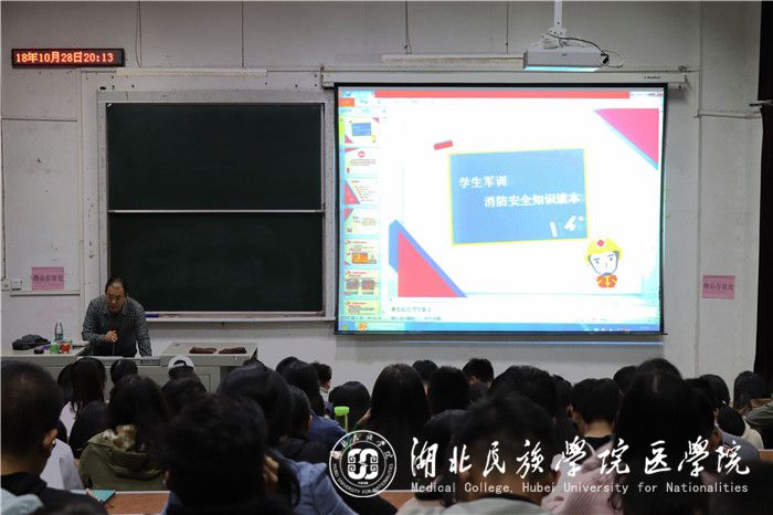 本网讯(卢天琳 苗佩佩/文 吕丰旭/摄)为了提高大学生安全意识,使其掌握一定的消防安全知识,10月28日,我院学生会公寓部于医学院8206教室举办主题为“人人防火,户户平安”的冬季安全讲座。我校保卫处科长赵仁越应邀出席并担任了此次讲座的主讲人,我院18级全体班委及寝室长聆听此次专题讲座。