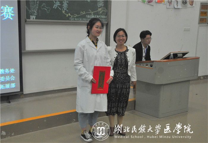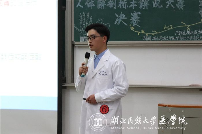 据悉,本次大赛所讲解的标本涉及肝、脾、肾、胰腺、心、膀胱、胆囊等,选手们统一身着白大褂,展现出医学生的严谨作风。十二号选手龚敬与三号选手余英同对肾脏进行解说,前者侧重于肾脏的组织结构和生理功能的解说,而后者更侧重于讲解肾脏的保护措施,使同学们更全面地了解肾脏。五号选手苗佩佩以胆囊的位置、分布为切入点,依次对“胆囊的位置以及形态”、“胆囊三角”、“胆结石的影像特征”等方面展开讲解,获得评委一致好评。八号选手姚帆迪以生命离不开肝脏为切入点,依次对“肝的形态”、“肝的位置与毗邻”、“肝的功能”几方面展开讲解。她凭借充实的内容、准确的表达、清晰的逻辑赢得阵阵掌声,最终摘得桂冠。