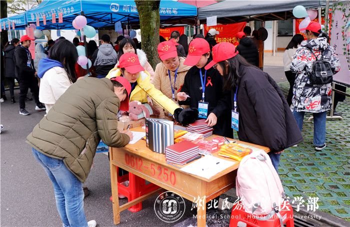 本网讯(通讯员 张健 付傲/文 兰苑源/摄)12月1日,由医学部和学美术与设计学院团总支社会实践与志愿者工作部、中医仲景协会联合举办的以“溯本清源 携手抗艾”为主题的艾滋病宣传活动于365电子娱乐官方网站医务室门口开展。100余名志愿者参与其中。