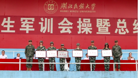 军训团政委、学校党委副书记邓磊作总结讲话。他代表学校党委和军训团对2023级新生、优秀学员等表示热烈祝贺,对承担本次军训任务的武警恩施支队全体教官致以崇高敬意,对为本次军训提供后勤保障、管理服务及新闻宣传的工作者表示感谢。他表示,军训是培养青年一代家国情怀、锻造坚韧品格和提振精气神的重要途径,军训成果汇报达到了既定的目标。在十四天的军训中,同学们克服高温、阴雨连绵等天气带来的种种困难,经受住了挑战。同时,他对大家即将到来的大学生活提出三点希望,胸怀大志,报效祖国;立德为先,砥砺品质;崇学笃行,求真务实。