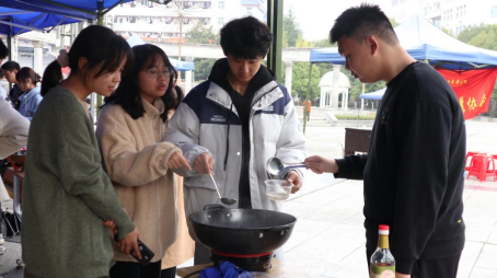 本网讯 (记者 郑丽洁/文 周琦凯/摄 通讯员 李江洁/文 王锐鹏/摄)为加深同学们对中医药知识的认识和理解,更好地传播中医药知识。11月26日,医学部中医仲景协会在大学生广场举办第九届“仲景杯”药膳烹饪大赛。医学部党委纪检委员、副主任、中医药学院院长杨瑾老师,医学部中医药学院王慧娟老师、赵敏老师、谭云霞老师应邀出席比赛并担任评委。
