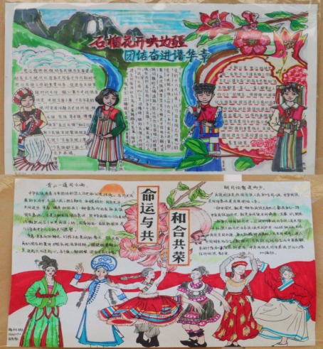 本次活动通过创作手抄报作品让同学们在创作过程中进一步学习了“铸牢中华民族共同体意识”相关的理论知识,加深了同学们对于各族人民一家亲的认同,增强了民族自豪感。让同学们在砥砺奋斗中铸牢中华民族共同体意识,争做新时代民族团结的“守护者”、“传承者”与“践行者”。