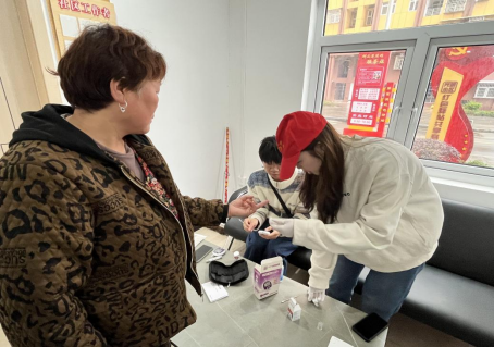 活动当天,来自医学部各专业的志愿者被分为三个小分队,分别开展采取血样、测量血压和辅导小朋友学习的任务。在活动现场,志愿者坚守各自的岗位,热情待人,严谨做事,整个活动开展得井然有序。其中,测量血压志愿服务小组在残友之声·恩施服务中心围绕高血压进行健康宣讲,志愿者们耐心讲解了什么是高血压、高血压的危害,此外,志愿者通过给出日常饮食建议、宣讲八段锦相关知识,使老年人更清晰地认识到健康膳食、适量运动对防治高血压的重要性,并在宣讲之后现场为老年人测量了血压。