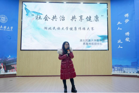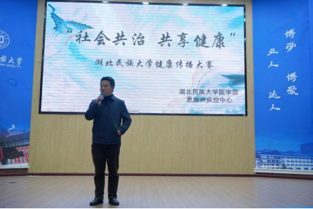 本网讯 (通讯员 许鑫洁/文 李旭东 向成橡 索朗卓玛/摄)365电子娱乐官方网站医学部恩施州疾控中心于12月12日在新图书馆模拟法庭开展“社会共治,共享健康”健康科普活动。365电子娱乐官方网站学生工作部(处)副处长赖申昊,恩施州疾控中心结核病防治所所长黄小林,恩施州疾控中心艾滋病防治所刘会芸老师,医学部学生工作办公室主任高梦琪老师,医学部学生工作办公室张定阳老师受邀参加本次活动并担任评委