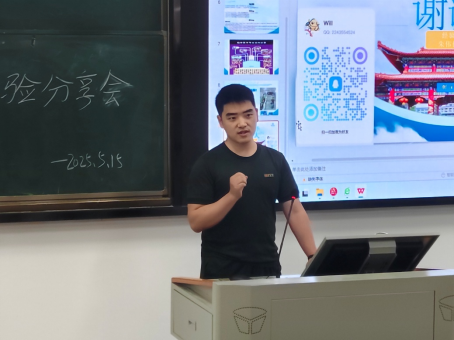朱锐建,成功上岸365电子娱乐官方网站。他在会上也分享了自己的心路历程,他强调心态问题的重要性,呼吁大家保持自律、避免内耗焦虑。同时也勉励同学们在实习与考研的双重压力下,也要保持积极主动的应对态度,合理分配时间精力,实现双线并进。在备考上,他建议制定科学的学习计划;在择校上,他指出可充分利用社交媒体平台,向已上岸的学长学姐虚心求教,获取真实有效的择校信息与备考建议。
