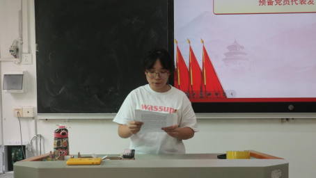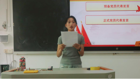 预备党员代表谢冰雪、正式党员代表王四美分别发言,表示将始终牢记党员身份,坚定理想信念,以勤奋学习强本领,以服务同学践初心,切实发挥先锋模范作用,把对党的忠诚融入日常学习与实践中。