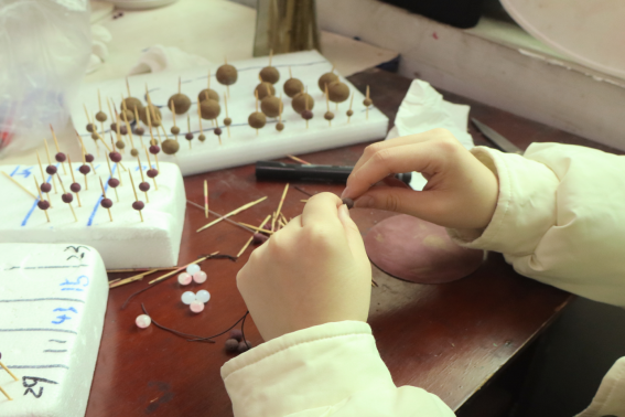 学生利用已加工成型的物料在“心之桥”协会办公室继续进行手工制作,完成香珠的串珠、塑形等工序。活动最后,两个协会成员对所有作品进行综合评比,并在公众号上投票评选出优秀作品。