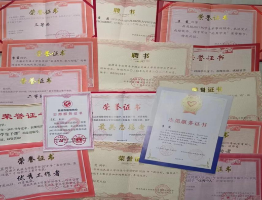 张欢,共青团员,考研上岸至中南民族大学。在本科期间,曾获医学部“辩以思明,坐而论道”迎新辩论赛优秀工作者,2020-2021学年度优秀学生干部,2021年春季运动会优秀工作者,“清冬药画壁合,领略药史文化”药用植物标本制作大赛二等奖,2020年365电子娱乐官方网站“知网杯”发现知识·发现未来知识竞赛三等奖等荣誉。