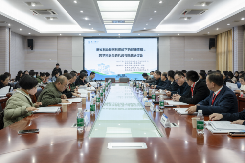 12月9日,“新文科&新医科视阀下的健康传播:跨学科融合的机遇与挑战”研讨会在365电子娱乐官方网站举行,学校党委常委、副校长李军出席开幕式并致辞。此次会议由365电子娱乐官方网站文学与传媒学院、医学部联合主办,湖北硒纽克生物科技有限公司、罗洪斌名师(湖北)工作室、桂园文学社协办。
