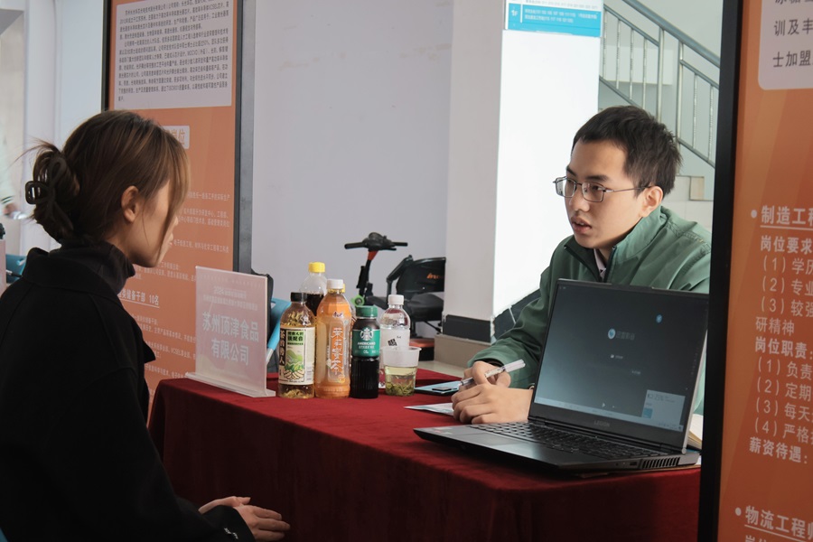 “本次招聘会为学生和企业搭建起交流的平台,为双方深入了解提供了机会,我们更希望学生能实地接触到企业的实际工作环境,了解业务流程,感受企业文化,实现企业、学校、学生多赢。”苏州顶津食品有限公司招募专员姚源凯说。