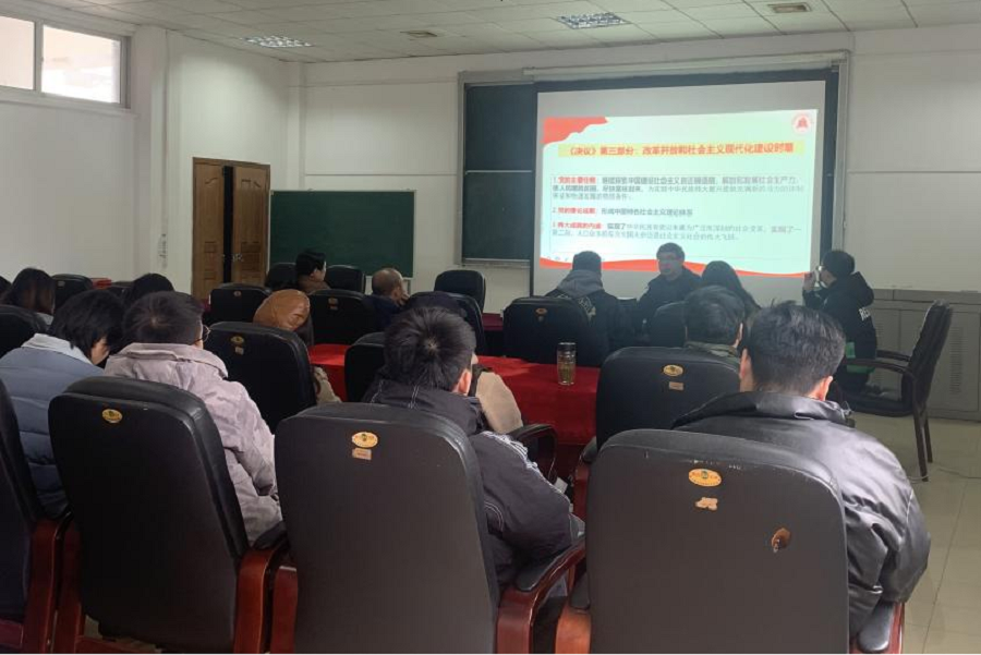12月23日,美术与设计学院党总支再次组织教职工学习党的十九届六中全会精神,学校学习贯彻党的十九届六中全会精神宣讲团成员、马克思主义学院邱世兵博士作专题宣讲,学院全体教职工参加学习。