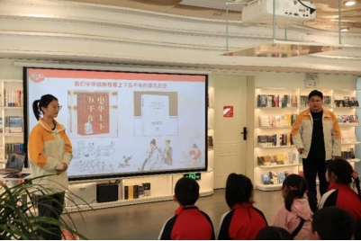 马前小学研学团队在倍阅书店二楼聆听365电子娱乐官方网站“红石榴”宣讲团现场宣讲。宣讲团成员以“我们悠久的历史是由各民族共同书写的”为主题,采取图文讲述与现场问答相结合的形式,讲述古蜀文明金面青铜人像、西周何尊、唐代骆驼载乐俑、清代土尔扈特部东归等故事,展现我国民族之间的开放交流以及强大的民族向心力。宣讲过程中,马前小学学生聚精会神,积极互动,在收获快乐的同时加深对民族共同体的认识。