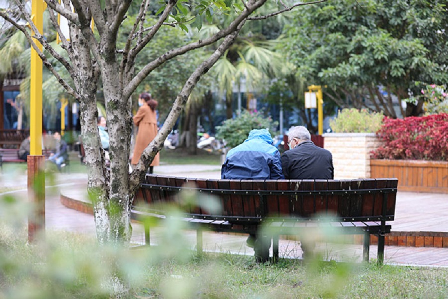 患者及家属在医院花园休息