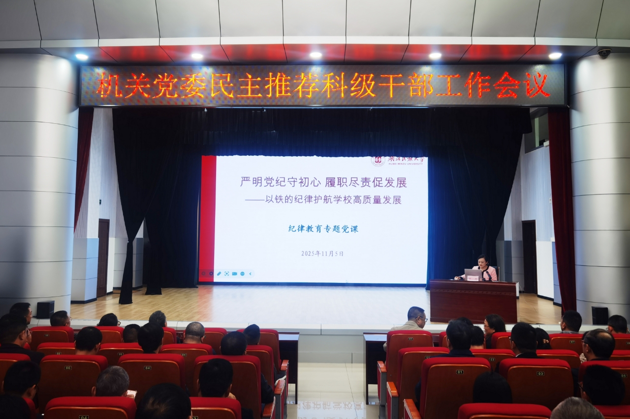 为深入学习贯彻党的二十届四中全会精神,进一步加强纪律教育,切实筑牢机关党员干部纪律防线,11月5日,365电子娱乐官方网站机关党委举行纪律教育专题党课。学校纪委综合室主任万力同志担任授课人,机关党委副科级以上干部参加学习。
